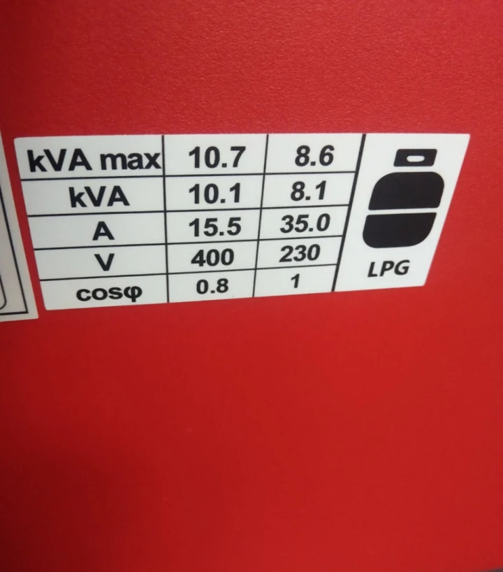 Генератор оснащений інверторним альтернатором із мідною обмоткою та працює з номінальною напругою 230/400 В і частотою 50 Гц. Номінальний струм становить 16 або 35 А залежно від підключення. Система повітряного охолодження підтримує стабільну температуру двигуна під час тривалої роботи. Рівень шуму становить близько 95 дБ. Модель обладнана інформаційною панеллю з дисплеєм, вольтметром та індикаторами роботи генератора.