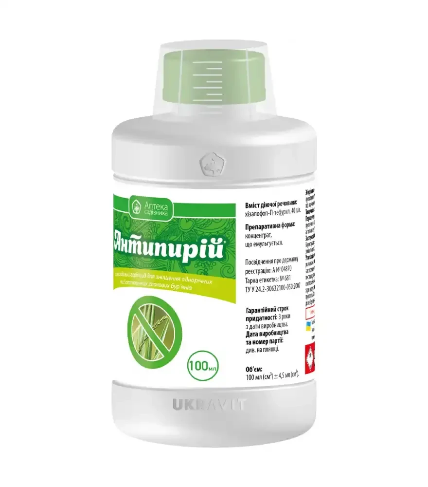 Антипирій — високоефективний післясходовий гербіцид, який забезпечує надійний контроль над однорічними та багаторічними злаковими бур’ янами в посівах різних культур. Це ідеальне рішення для чистих полів і здорових культур.