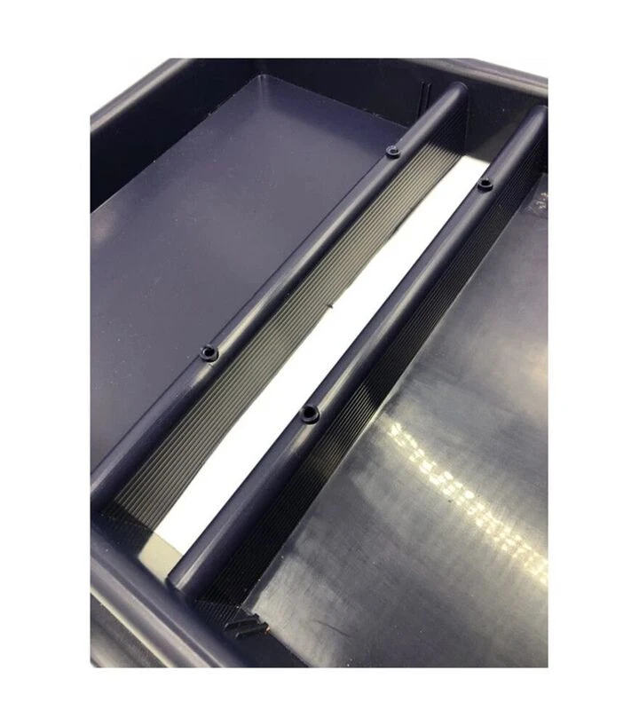 Стельова годівниця об’ємом 3,7 л призначена для підгодівлі бджолиних сімей та відводків сиропом, водою або канді. Встановлюється безпосередньо на рамки 10-рамкового вулика та повністю перекриває надрамковий простір. Конструкція складається з корпусу з двома секціями та центральним проходом для бджіл. Передбачена перегородка обмежує доступ і знижує ризик потрапляння бджіл у сироп. Виготовлена з первинного харчового пластику. Розмір 490×410 мм дозволяє щільно встановити годівницю без додаткових доробок.