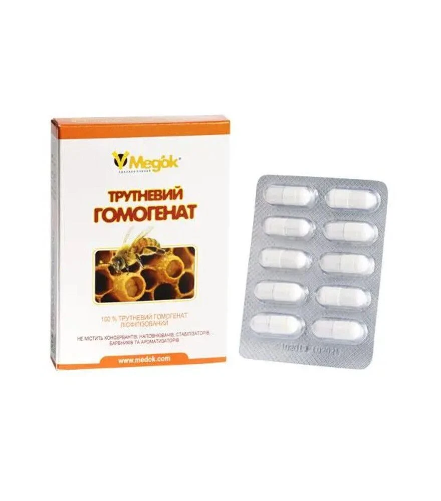 Трутневий гомогенат - продукт бджільництва, який отримують із личинок трутнів. У ліофілізованій формі його висушують холодом, щоб зробити продукт стабільнішим у зберіганні та зручнішим у щоденному використанні. Такий формат часто обирають, коли важлива компактність, дозування капсулами та менша залежність від температурних умов, ніж у замороженого продукту. Використовується як харчовий продукт, але потребує уважності до індивідуальної переносимості.
