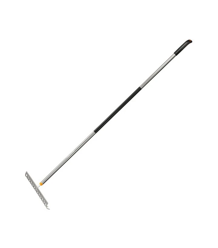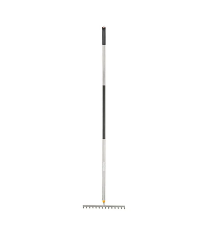 Робоча частина виготовлена зі сталі та має 14 міцних зубців, що добре працюють із різними типами ґрунту та садовим сміттям. Пряма ергономічна ручка з алюмінію покрита SoftGrip™, завдяки чому граблі зручно тримати навіть при довготривалій роботі. Інструмент легкий, збалансований і підходить для щоденного догляду за садом.