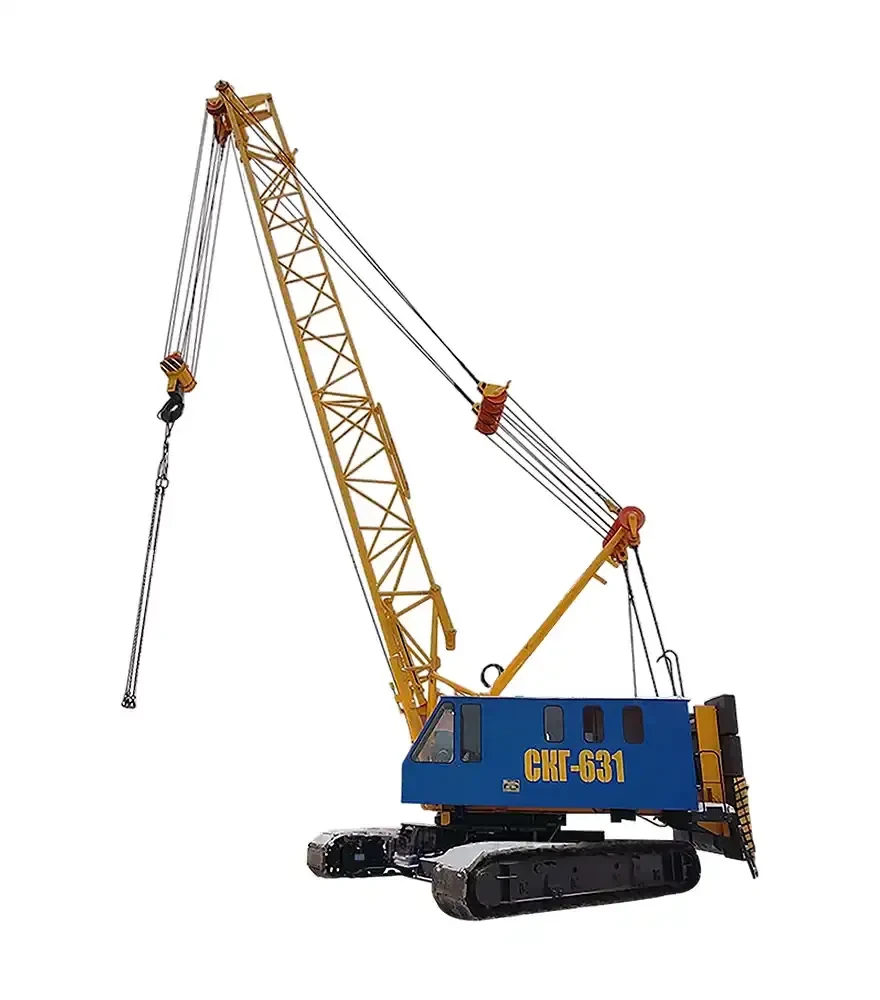 Гусеничний кран СКГ 631 — це високопродуктивна монтажна машина, призначена для виконання важких підйомних робіт у будівництві. Цей кран має максимальну вантажність 100 т, що дозволяє виконувати складні завдання з високою точністю. Оснащений потужним дизельним двигуном, СКГ 631 забезпечує стабільну та надійну роботу. Виліт стріли становить 23 м, що робить його універсальним для різних будівельних проєктів. Завдяки додатковим подовжувачам, висота підйому може бути значно збільшена. Гусеничний хід забезпечує високу маневровість і стабільність на будь-якому типі ґрунту, що робить СКГ 631 ідеальним для роботи в складних умовах. Міцна конструкція крана гарантує тривалий термін служби навіть при інтенсивній експлуатації.