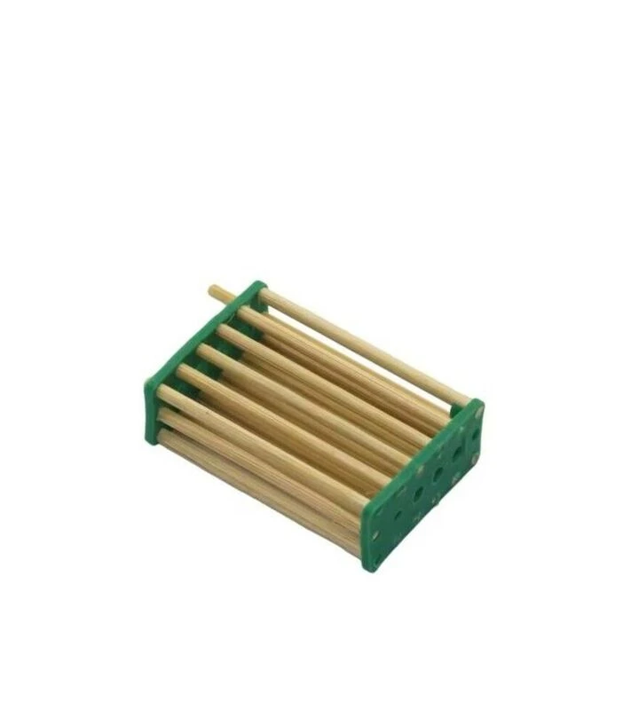 Кліточка для маток бамбукова QC16 застосовується для відділення матки або маточника під час підсадки та виведення на пасіці. Вона забезпечує вентиляцію, можливість розміщення корму та підходить для тимчасового утримання і пересилання маток у робочих умовах.