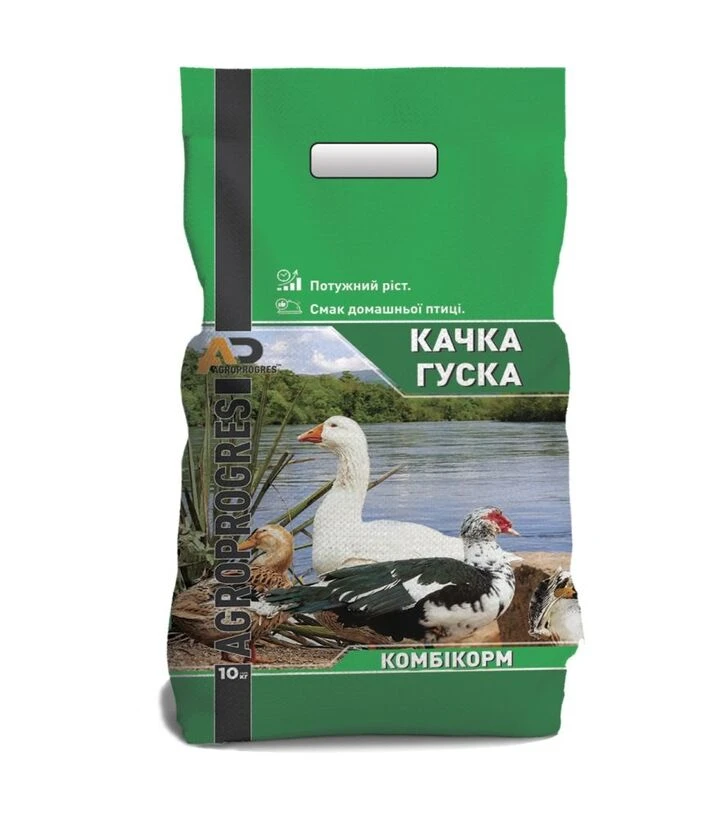 Комбікорм Качка-Гуска Стартер (крупка) -повнораціонний комбікорм для пташенят качок і гусей з першого до 35 дня життя. Завдяки зручній формі крупки корм легко засвоюється, сприяє розвитку апетиту та активному росту молодняку.