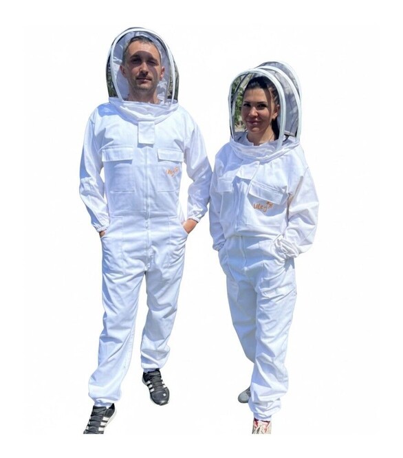 Комбінезон бджоляра з маскою євро призначений для роботи на пасіці та захисту від укусів бджіл під час щоденних робіт. Використовується під час оглядів вуликів, формування гнізда, відбору меду та інших пасічних операцій. Комбінезон виготовлений з бавовняної тканини, яка добре пропускає повітря та забезпечує комфорт у теплу погоду. Білий колір знижує збудження бджіл і сприяє спокійнішій роботі біля вуликів.