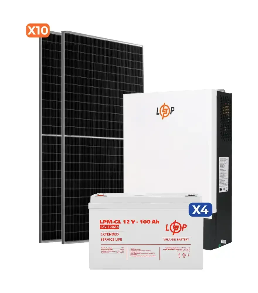 LogicPower Стандарт 100Ah, 5 кВт — це надійна гібридна сонячна електростанція, призначена для забезпечення автономного живлення приватних будинків, дач та інших об’єктів. Система включає в себе 10 монокристалічних сонячних панелей потужністю по 450 Вт кожна, що генерують достатньо енергії для живлення побутових приладів та резервного живлення в умовах відключення електроенергії. Гелеві акумулятори (GEL) ємністю 100 Ah забезпечують стабільне накопичення енергії з можливістю зберігання до 4,8 кВт·год. Інвертор потужністю 5 кВт забезпечує пікову потужність до 5,5 кВт, що дозволяє системі працювати з високими навантаженнями. Вбудований MPPT контролер на 60 А оптимізує зарядку акумуляторів, що підвищує ефективність використання сонячної енергії. Ця система є ідеальним рішенням для тих, хто шукає незалежне і екологічне джерело енергії, яке не потребує додаткового технічного обслуговування.