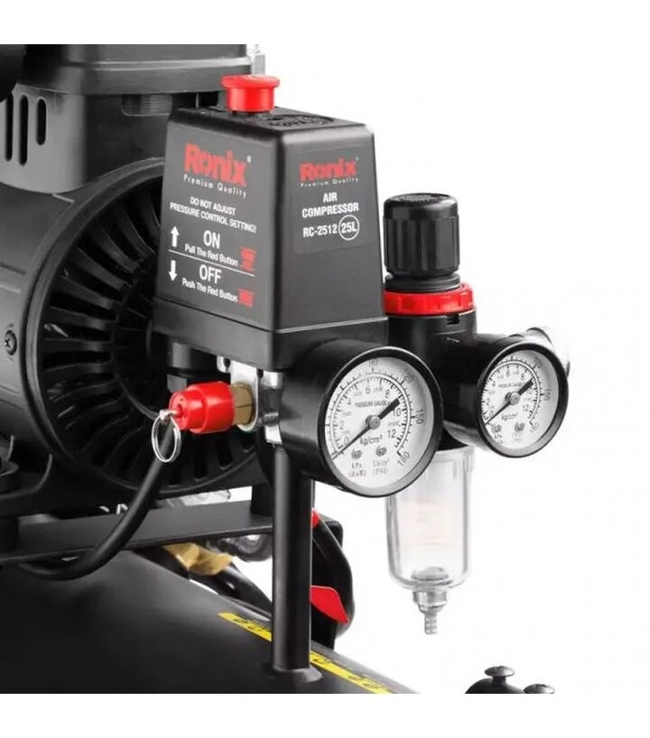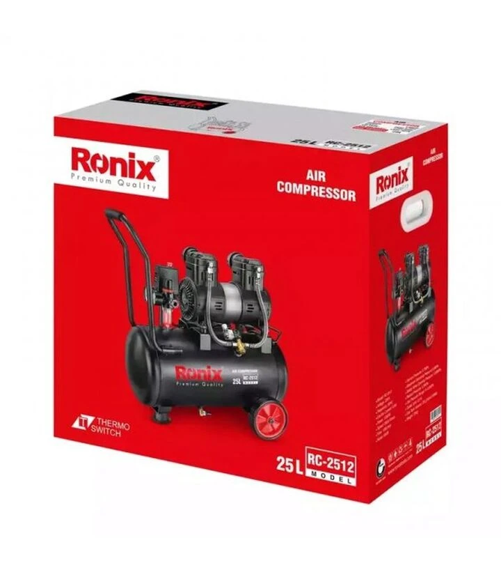 Ronix RC-2512 - це компресор із оптимальним поєднанням потужності, мобільності й готовності до щоденних завдань у компактному вертикальному форматі.