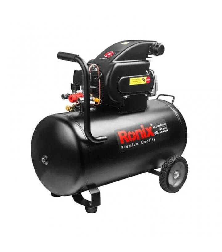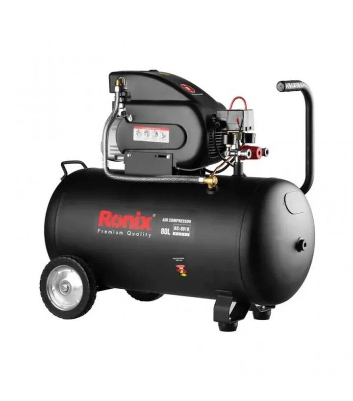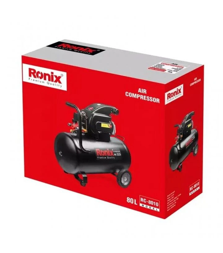 Компресор Ronix 1800 Вт (RC-8010) Ronix RC-8010 - це потужний вертикальний компресор з ресивером на 80 літрів і двигуном 1860 Вт. Продуктивність - 230 л/хв, робочий тиск - до 8 бар. Працює від стандартної мережі 220 В, має коаксіальний привід, повітряне охолодження і один ступінь стиснення. Призначений для тривалої роботи з пневмоінструментом у побутових і напівпрофесійних умовах. У комплекті - повітряний фільтр, пляшка олії, два колеса, два швидкоз’єми (air couplers) та коробка. Ronix - міжнародний бренд, що виробляє інструменти для стабільної щоденної роботи в майстернях, гаражах і на виробництві. Продукція орієнтована на зручність, витривалість і практичність.