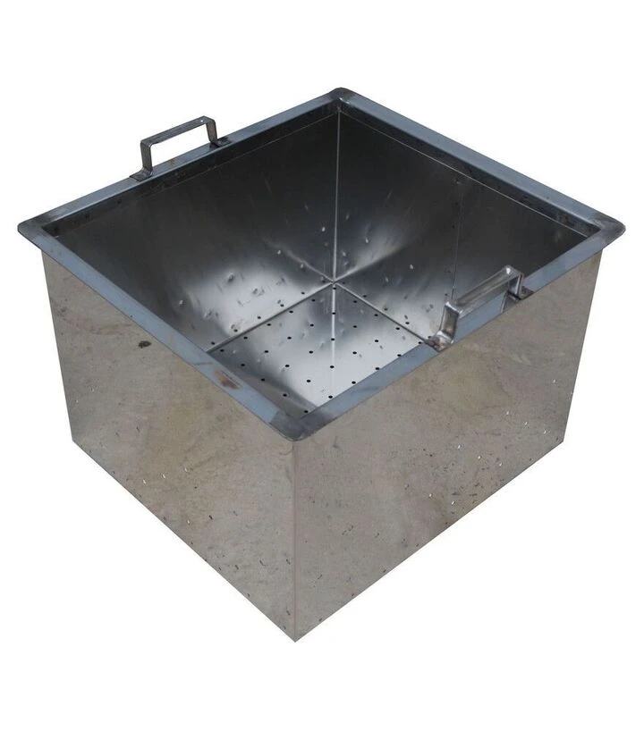 Кошик для забрусу 440х390х280 мм, нержавіюча сталь (1645) призначений для збору та фільтрації забрусу від меду під час розпечатування стільників. Використовується у столах для роздруківки сот або в інших саморобних конструкціях, де потрібно відокремлювати мед від воскових кришечок. Конструкція виконана з нержавіючої сталі, що підходить для контакту з продуктами бджільництва та роботи у вологому середовищі. Внутрішній об’єм дозволяє накопичувати забрус під час процесу без частого очищення.