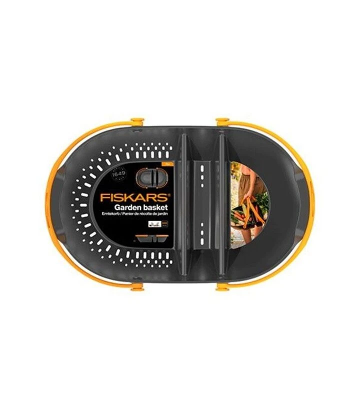 Кошик для збирання врожаю Fiskars 1062831 - практичне рішення для збору, миття та транспортування врожаю. Поєднання двох функціональних зон, міцний пластиковий корпус і зручні ручки забезпечують комфортну роботу під час сезонних польових робіт.