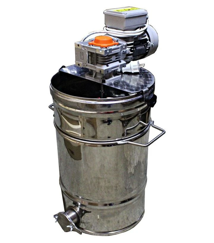 Кремувалка для меду автоматична (О93001) призначена для переробки меду з метою зміни його структури та отримання крем-меду. Основа конструкції - циліндричний бак із нержавіючої сталі зі зливним краном унизу та ротор із приводом. Усередині бака встановлений нержавіючий ротор, закріплений на вихідному валу редуктора, з 4 лопатями спеціальної конфігурації. Об’єм ємності - 33 л, що зручно для роботи з партіями меду та подальшого фасування через кран.