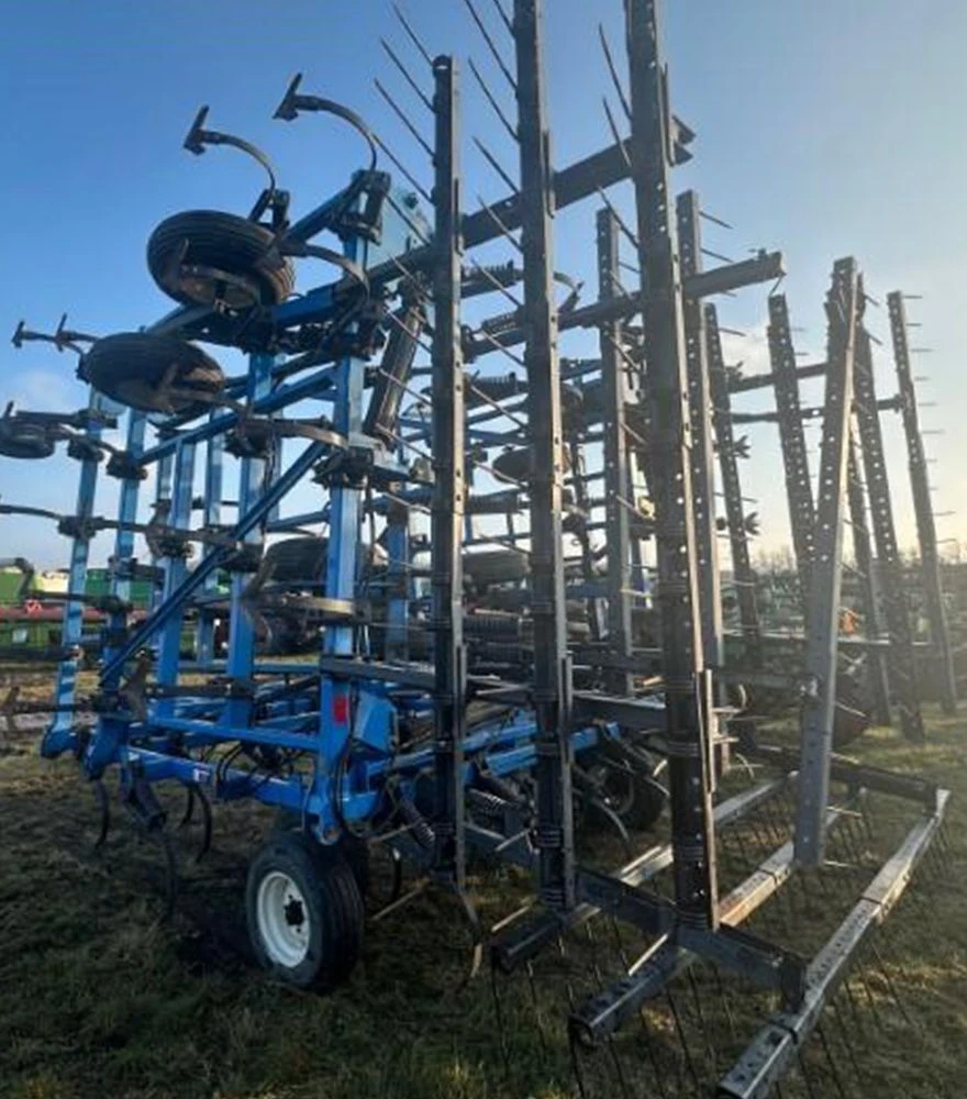 Культиватор DMI Tiger Mate 14,5 м - це надійна техніка для обробітку ґрунту, що забезпечує ефективну підготовку поля до посіву. Завдяки ширині захвату 14,5 метра, цей культиватор здатний обробляти великі площі, що значно економить час та зусилля. Культиватор має 5 рядів лап, які дозволяють глибоко обробляти ґрунт на глибину від 5 до 15 см. Робоча швидкість варіюється від 8 до 12 км/год, що робить його універсальним для різних умов роботи. Оптимальна потужність трактора для цього культиватора становить від 290 до 340 к.с.