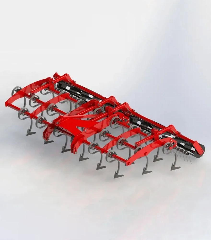Культиватор має просту навісну конструкцію, що полегшує агрегатування з тракторами середньої потужності. Оснащений трьома рядами робочих органів, що забезпечують якісне розпушування та вирівнювання ґрунту. Стійки з підпружниками італійського виробництва знижують навантаження на раму, підвищуючи довговічність агрегата. Можливість роботи на різних типах ґрунтів і схилах.