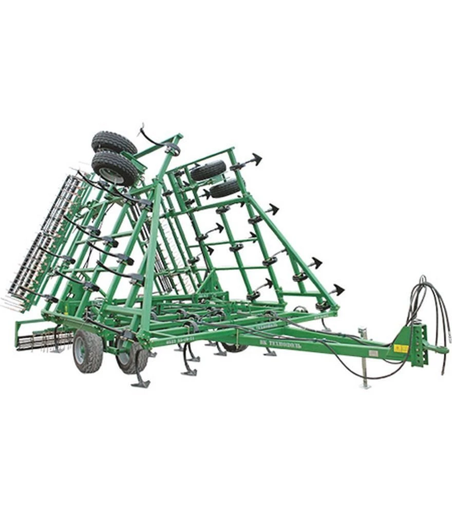 Культиватор Технополь АК 9,7 - причіпний культиватор для суцільного обробітку з шириною захвату 9,7 м. Оснащений 81 боронуючим зубом і 49 секціями ріжучих лап шириною 260 мм. Працює з тракторами від 240 к.с., демонструє продуктивність до 9 га/год при робочій швидкості 12 км/год. Призначений для великих господарств, де потрібна висока швидкість і рівномірна якість обробітку ґрунту. Виробник - українська компанія Технополь, яка спеціалізується на створенні ґрунтообробної техніки з урахуванням умов роботи українських господарств. Прості, практичні рішення для щоденної роботи в полі.