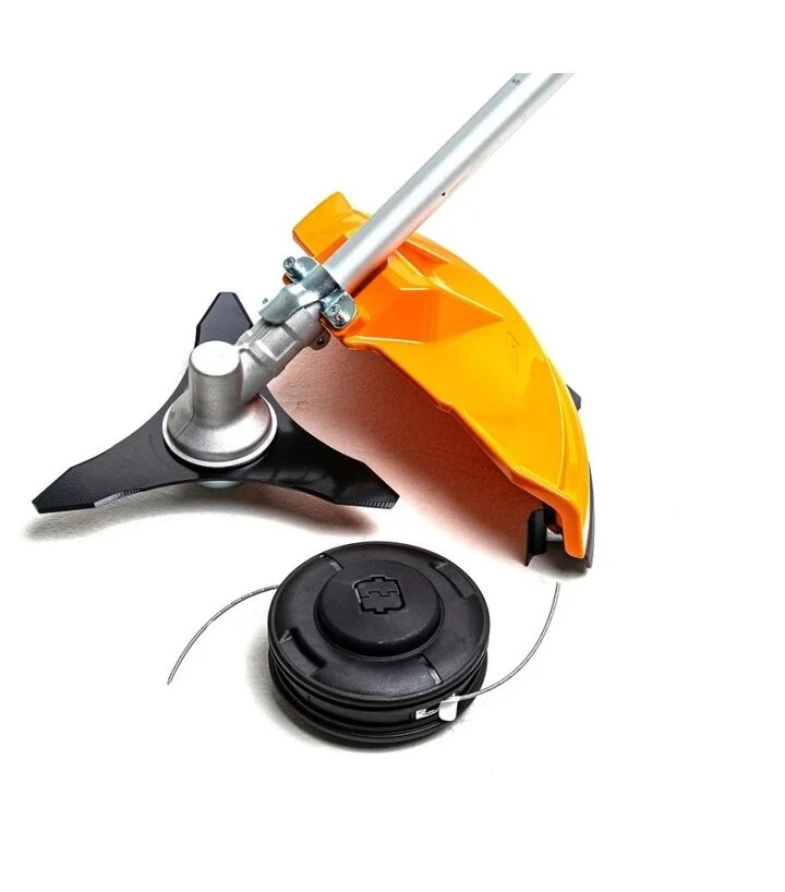 Комплектація: захисний кожух, ключ, косильна головка, ніж для трави, ремінь