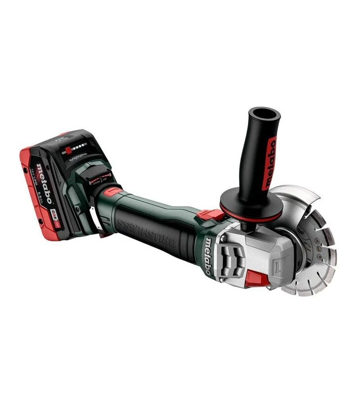 Кутова шліфмашина акумуляторна Metabo WB 18 LT BL 11-125 Quick, 2x5,5 А*Год, metaBOX (613054660) - це високопродуктивна безщіткова модель із потужністю, еквівалентною мережевому інструменту на 1100 Вт. Завдяки збільшеній ефективності двигуна інструмент стабільно працює під навантаженням і розвиває швидкість 10000 об/хв, забезпечуючи швидке різання та шліфування.