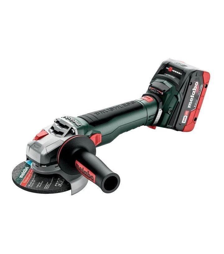 Акумуляторна кутова шліфмашина Metabo WB 18 LT BL 11-125 Quick призначена для різання, шліфування та обробки різних матеріалів під час монтажних, будівельних і ремонтних робіт. Інструмент працює від акумуляторної системи 18 В та оснащений безщітковим двигуном, що забезпечує стабільну продуктивність і ефективне використання енергії. Конструкція розрахована на роботу з дисками діаметром 125 мм та підтримує швидкість обертання до 10000 об/хв. Завдяки технології швидкої заміни диска M-Quick обслуговування інструмента виконується без застосування додаткових інструментів. Модель поєднує продуктивність та мобільність, що дозволяє працювати у місцях без доступу до мережевого живлення. Конструкція передбачає системи безпеки, електронний захист і можливість зручного налаштування положення акумулятора для комфортної роботи у різних положеннях.
