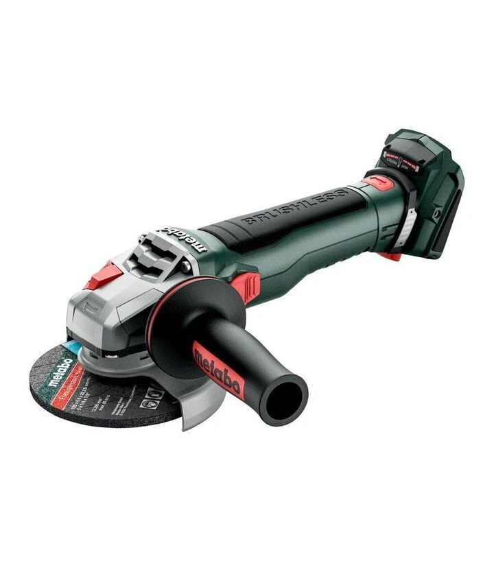 Акумуляторна кутова шліфмашина Metabo WB 18 LT BL 11-125 Quick призначена для різання, шліфування та обробки металу, каменю й інших матеріалів під час монтажних, будівельних та ремонтних робіт. Інструмент працює від акумуляторної системи 18 В і розрахований на використання шліфувальних дисків діаметром 125 мм. Безщітковий двигун забезпечує стабільну продуктивність і ефективне використання енергії акумулятора. Конструкція дозволяє досягати швидкості обертання до 10000 об/хв, що дає можливість виконувати різні операції з обробки матеріалів. Завдяки системі швидкої заміни диска M-Quick користувач може змінювати оснащення без застосування ключів або додаткових інструментів. Компактна конструкція та ергономічне розташування елементів керування забезпечують зручність роботи у різних положеннях, включаючи обмежений простір або складні робочі зони.