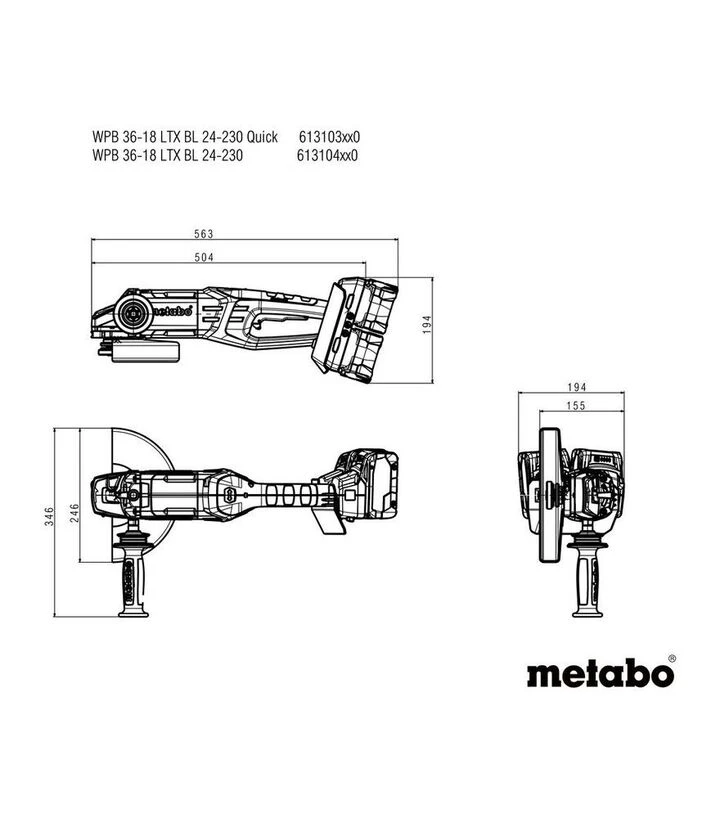 Кутова шліфмашина акумуляторна Metabo WPB 36-18 LTX BL 24-230 Quick, без АКБ та ЗП (613103840) призначена для різання та шліфування металу, каменю та інших матеріалів без використання електромережі. Інструмент працює на акумуляторній платформі 36 В, яка формується за рахунок використання двох акумуляторів по 18 В. Модель розрахована на диски діаметром 230 мм, що дозволяє виконувати глибокі різи та обробку великих поверхонь. Безщітковий двигун Metabo забезпечує стабільну продуктивність та ефективне використання енергії. Конструкція передбачає системи електронного захисту, швидку заміну диска та антивібраційну рукоятку Metabo VibraTech. Інструмент підходить для використання у будівництві, монтажних роботах та на об’єктах без доступу до електромережі.