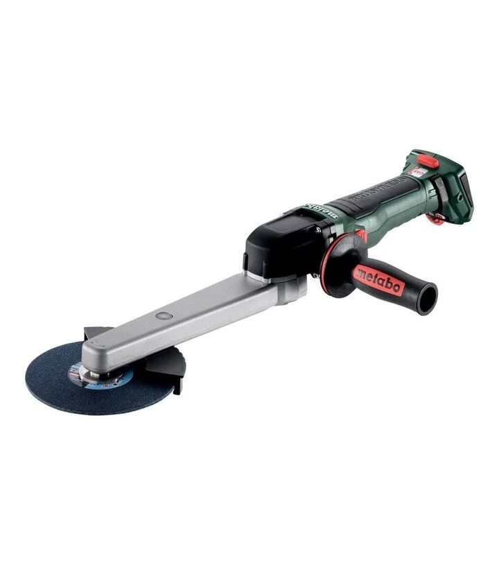 Кутова шліфмашина для швів акумуляторна Metabo KNSVB 18 LTX BL 150 призначена для обробки та шліфування кутових зварних швів, зокрема на виробах з нержавіючої сталі. Інструмент має дуже плоску конструкцію корпусу, що дозволяє працювати у вузьких місцях і обробляти шви у складних положеннях. Акумуляторна система живлення 18 В забезпечує автономну роботу без підключення до електромережі. Безщітковий двигун забезпечує стабільну продуктивність та ефективне використання енергії акумулятора. Регулювання швидкості обертання в діапазоні від 1000 до 3600 об/хв дозволяє підбирати режим роботи залежно від матеріалу та типу обробки. Конструкція передбачає ремінний привід та систему електронного захисту двигуна, що допомагає підтримувати стабільну роботу інструмента навіть під навантаженням.