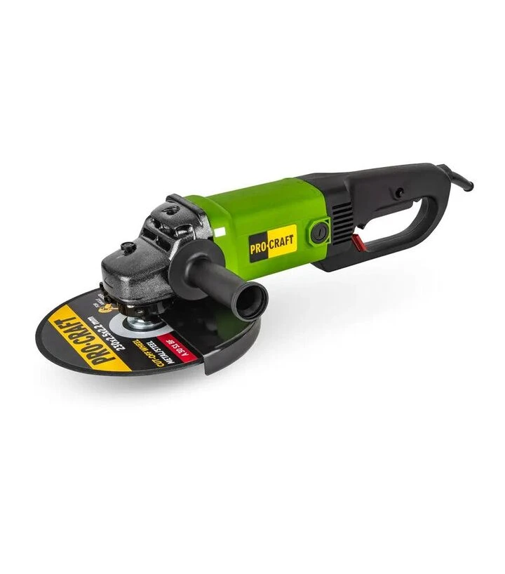 Кутова шліфмашина ProCraft PW-230/2300, 230 ммProCraft PW-230/2300 - мережева кутова шліфмашина під диск 230 мм для різання та зачистки, коли потрібен великий діаметр круга. Швидкість холостого ходу - 6000 об/хв, є ступеневе регулювання обертів для підбору режиму під матеріал і тип диска. Довгий кабель 3 м дає більше свободи біля верстаку або на об’єкті. Вага 3,9 кг підходить для робіт, де важлива стабільність інструмента в руках.