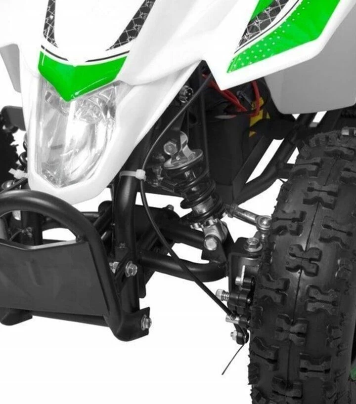 Квадроцикл HECHT 54803 має просту і легку конструкцію, що робить його доступним для будь‑якого користувача. Акумуляторна система дозволяє рухатися без шуму та викидів, а дискові гальма забезпечують впевнене гальмування. Конструкція без передніх фар спрощує дизайн і фокусує увагу на денних поїздках, коли природне світло достатнє. Вага транспортного засобу та його компактність дозволяють легко ним керувати і без зайвих зусиль контролювати рух по відкритій місцевості.
