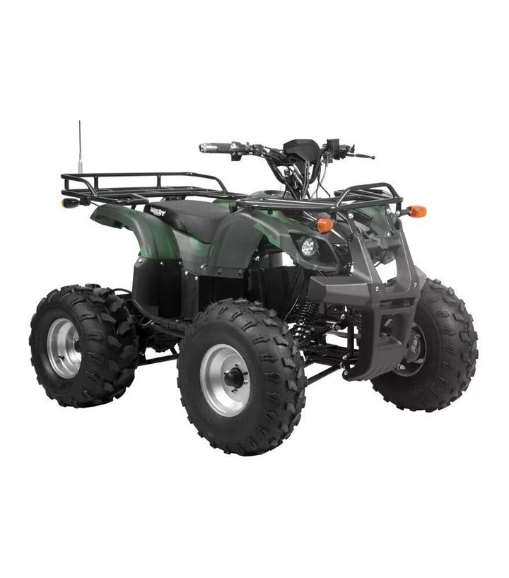 Квадроцикл акумуляторний HECHT 56150 ARMY - це потужний електричний транспорт для розваг, активного відпочинку та пересування на відкритих майданчиках, присадибних територіях та великих ділянках. Ця модель працює від акумулятора напругою 60 В з ємністю 20 А·год, що забезпечує тривалий час автономної роботи без потреби частого підзаряджання. Потужність двигуна становить 1,2 кВт - цього достатньо для того, щоб квадроцикл розганявся до максимальної швидкості до 45 км/год, що робить його динамічним і комфортним для пересування як по рівних поверхнях, так і по невеликих нерівностях. Вага транспортного засобу - 120 кг, що забезпечує йому добру стійкість, а також комфорт під час руху навіть під навантаженням. Максимальне навантаження, яке може витримати цей квадроцикл, становить до 120 кг, що робить його придатним не лише для дітей та підлітків, але й для дорослих, які хочуть мати потужний електротранспорт для активного відпочинку.