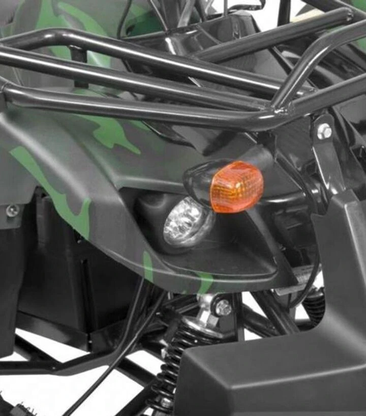 Квадроцикл HECHT 56150 ARMY має систему гальмування, що складається з дискових і барабанних гальм - таке поєднання забезпечує стабільну роботу гальмівної системи незалежно від умов руху. Передні фари дозволяють продовжувати рух навіть у сутінках, що додає впевненості під час їзди. Конструкція квадроцикла передбачає міцну раму та збалансовану вагу, що робить транспорт стійким і комфортним під час пересування навіть на нерівних ділянках.