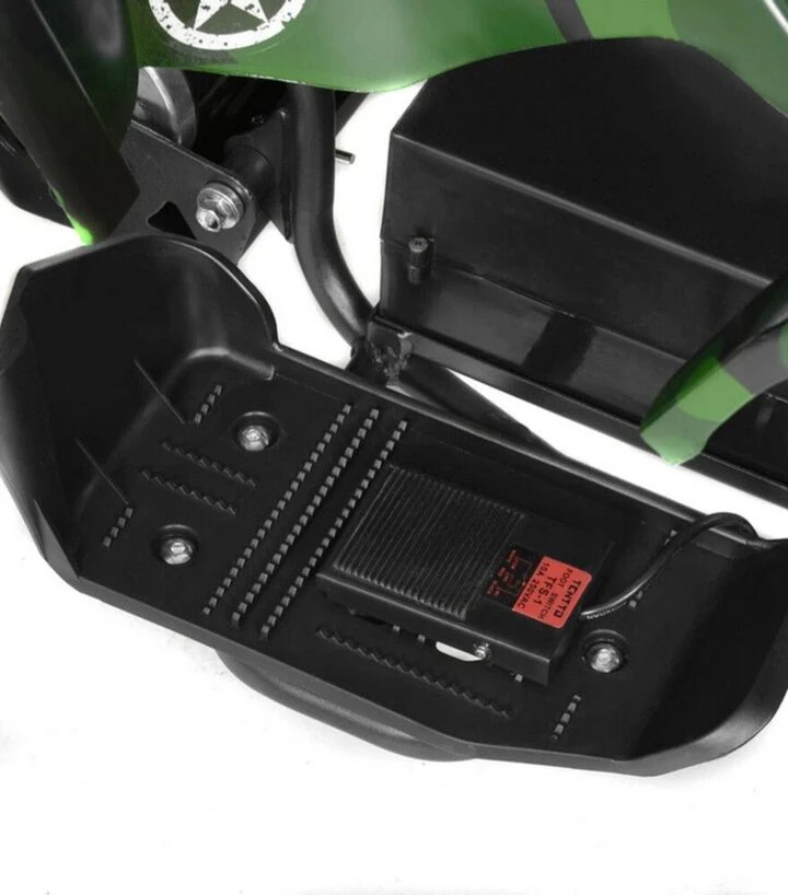 Квадроцикл HECHT 56801 має акумуляторну систему, що забезпечує автономну роботу без потреби в додатковому живленні під час руху. Передні фари дозволяють продовжувати їзду навіть при недостатньому денному світлі, а дискові гальма дають можливість впевнено зупиняти транспорт у будь‑якій ситуації. Конструкція квадроцикла легка, але достатньо жорстка, щоб виконувати щоденні поїздки. Розмір коліс і оптимальний радіус розвороту дозволяють без зусиль маневрувати на відкритих просторах та у дворі.