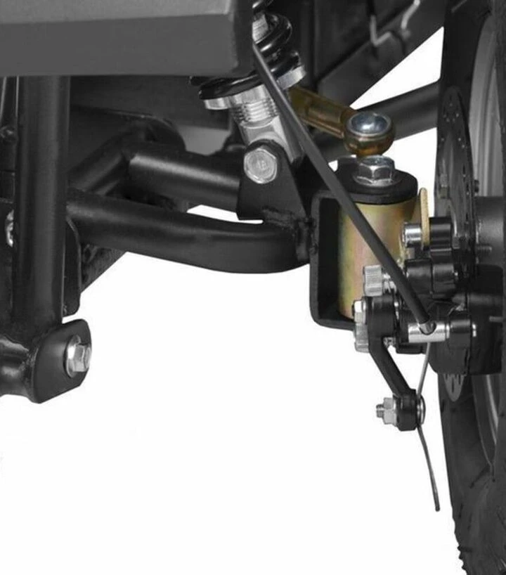Модель HECHT 56801 обладнана передніми фарами, що дозволяють використовувати квадроцикл навіть при частково обмеженому освітленні, наприклад, ввечері чи в сутінках, коли видимість дещо знижується. Дискові гальма забезпечують ефективне гальмування та контроль швидкості при зупинці або зміні динаміки руху, а розмір задніх коліс у 6 дюймів дозволяє забезпечити достатнє зчеплення з поверхнею під час руху. Мінімальний радіус розвороту становить 6 см - цей параметр підвищує маневреність та полегшує рух у обмежених просторах чи на ділянці з перешкодами.