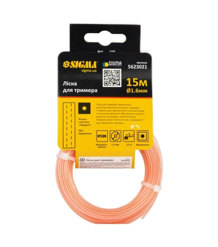Ліска для тримера Sigma армований квадрат Ø1,6мм, 15м (5623021)