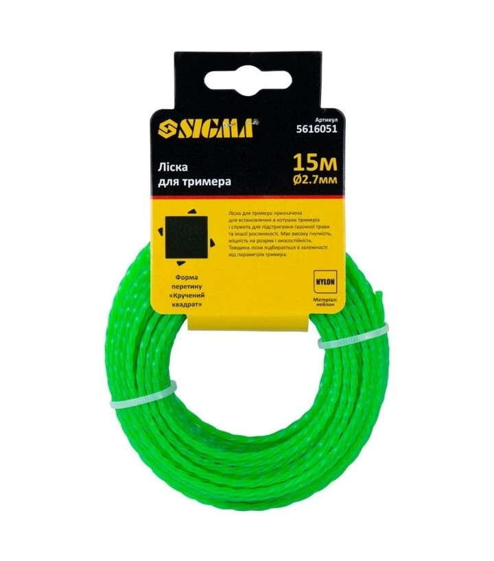 Ліска для тримера Sigma кручений квадрат Ø2,7мм, 15м (5616051)