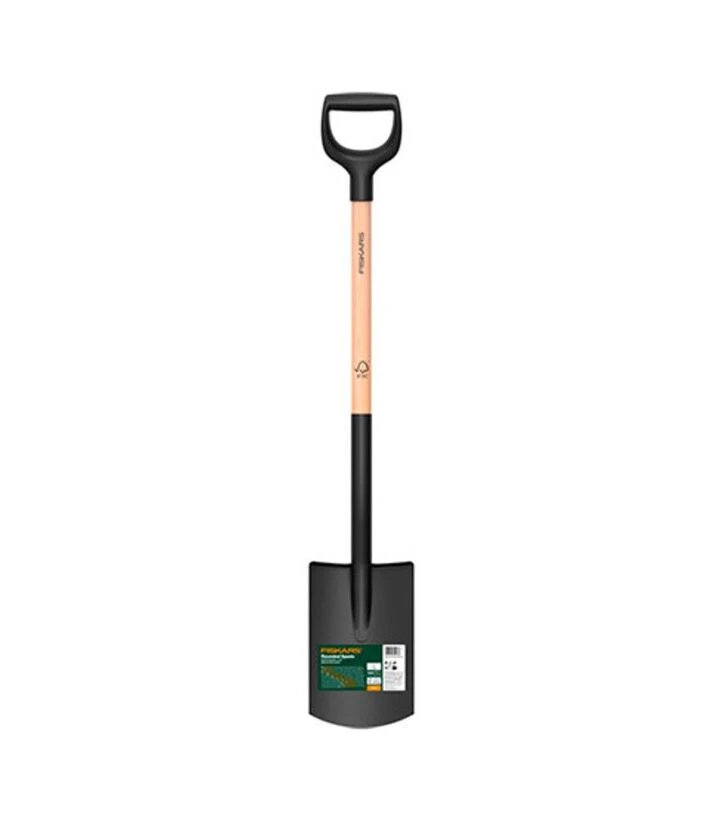 Лопата пряма з дерев'яною ручкою Fiskars Solid™ 1066722 призначена для копання, підрізання дерну та виконання посадкових робіт у м’якому та середньому за щільністю ґрунті. Закруглене лезо з гострим краєм полегшує входження в землю та допомагає формувати рівні краї лунок або траншей. Загальна довжина близько 1085 мм забезпечує зручне положення під час роботи, а вага близько 1800 г створює баланс між міцністю та керованістю інструмента. Лопата підходить для використання на присадибних ділянках, у саду чи на городі.