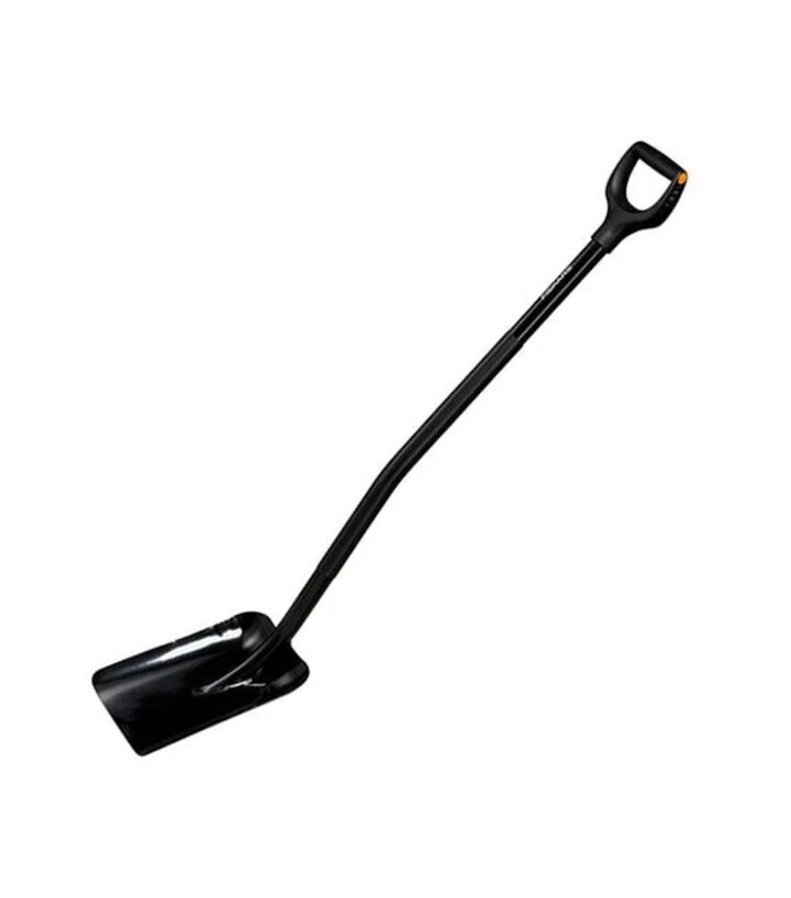 Лопата совкова Fiskars Ergonomic Pro 1066711 - інструмент із повністю сталевою конструкцією для переміщення важких матеріалів. Широкий ківш, вигнутий держак і зручна D-подібна ручка забезпечують контроль і стабільність під час інтенсивних робіт.