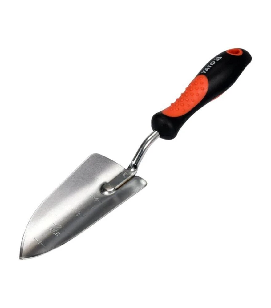 YATO хромована садова лопатка 340 мм з ергономічною ручкою (YT-8886) Ця лопатка призначена для копання, пересадки, розпушування ґрунту, формування грядок або підготовки клумб на садовій або городній ділянці. Робоча частина виготовлена зі сталі з хромованим покриттям, що зменшує ризик корозії та дає змогу працювати з вологим або трохи глинистим ґрунтом. Загальна довжина становить 340 мм, ширина робочої частини - 70 мм, що дає баланс між зручністю маневру й достатньою глибиною копання. Ергономічна ручка з ПВХ/сталі забезпечує комфортний хват, дає більш стабільне управління і контроль при роботі, навіть якщо ґрунт має кам’янисту структуру або потребує докладання зусиль. Ця лопатка підходить для приватних господарств, городів, дач або садів, де потрібні міцні, довговічні інструменти для регулярної роботи з ґрунтом. Виробник - YATO, компанія, яка спеціалізується на ручному інструменті для саду, будівництва і господарства. Інструменти YATO розроблені так, щоб забезпечити довговічність і зручність для користувачів, які виконують роботи на ділянках невеликого й середнього розміру. Модель YT‑8886 поєднує ефективність металевої робочої частини та комфорт ручки, що робить її придатною для регулярного використання в приватному господарстві або на невеликому фермерському обійсті.