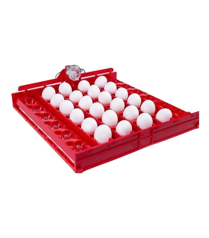 Мотор 220 В приводить у рух механізм лотка, який змінює кут нахилу яєць через задані проміжки часу. Завдяки цьому забезпечується регулярний переворот, необхідний для правильного розвитку ембріонів. Комірки різного діаметра дозволяють використовувати лоток для різних видів птиці.