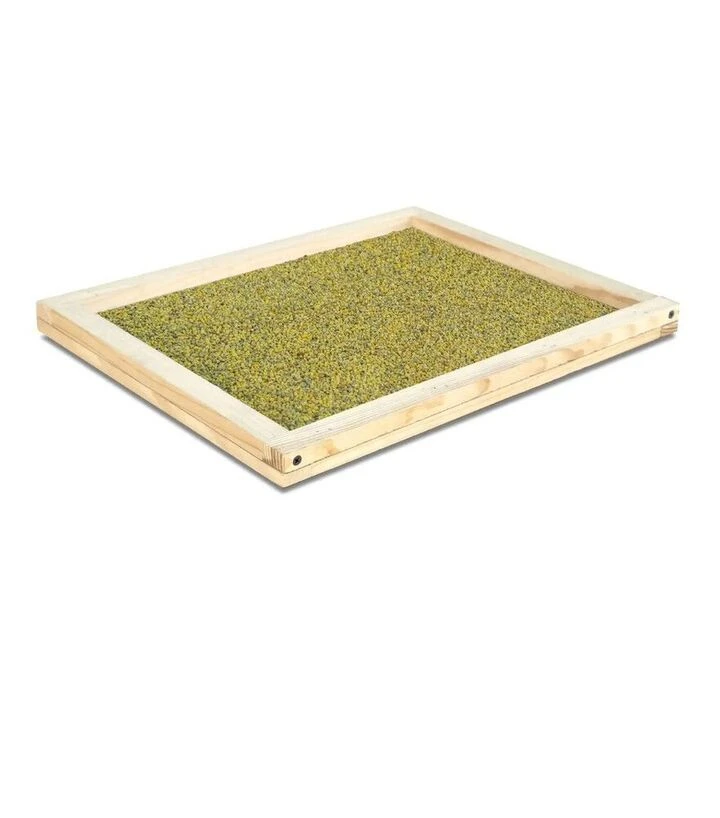 Дерев’яний лоток 500×500 мм з поліамідною сіткою призначений для сушіння бджолиного пилку в сушильних шафах моделей «М», «М-2» та «М-3». Дрібна комірка сітки 1,5×1,5 мм утримує пилок і не дає йому провалюватися, водночас забезпечуючи проходження повітря для рівномірного підсихання. Бортики висотою 15 мм допомагають розкладати пилок шаром і зменшують втрати під час завантаження та виймання. Формат 500×500 мм відповідає розміру лотків цих моделей шаф і підходить для регулярної сезонної роботи.