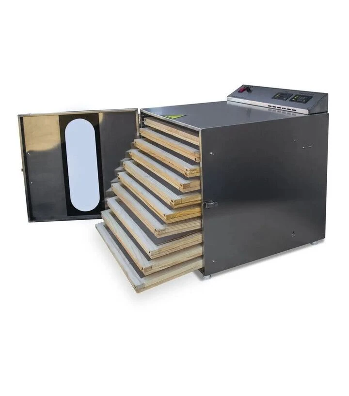 Пилок розкладають на поліамідній сітці рівним тонким шаром і встановлюють лоток у направляючі сушильної шафи. Повітря проходить крізь сітку з коміркою 1,5×1,5 мм, волога виводиться з нижнього шару, а пилок залишається на поверхні. Після завершення сушіння лоток виймають, пилок відбирають і очищають сітку від залишків.