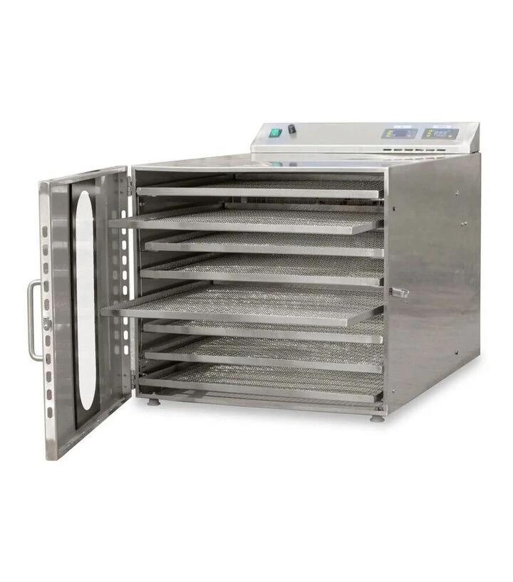 Продукт розкладають на лотку рівномірним шаром і встановлюють у направляючі сушильної шафи. Повітря проходить через сітку з комірками 10×10 мм, волога виводиться з нижніх шарів, а бортики утримують продукт під час переміщення лотка. Після завершення циклу лоток виймають, відбирають готову продукцію та очищають поверхню.