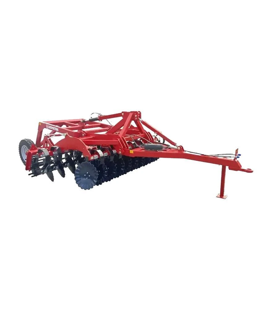 Лущильник дисковий ДЕМЕТРА CENTAUR-2500 Damper призначений для поверхневого обробітку ґрунту після збирання врожаю з метою подрібнення пожнивних решток, закриття вологи та підготовки поля до наступних агротехнічних операцій. Агрегат ефективно працює на стерні зернових і технічних культур, забезпечуючи рівномірний обробіток по всій ширині захвату 250 см. Причіпне виконання підвищує стабільність роботи, а продуктивність до 2,8 га за годину дозволяє виконувати роботи у оптимальні агротехнічні строки з тракторами потужністю від 80 к.с.