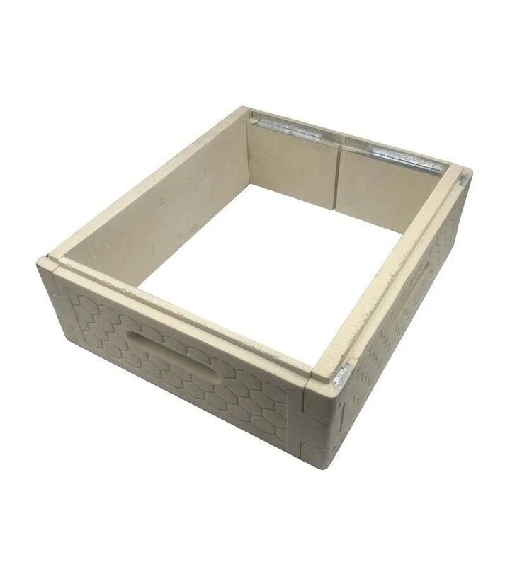 Магазин дає можливість швидко додавати об’єм під мед і працювати з напіврамками 145 мм. Невелика вага 1,3 кг спрощує знімання та перестановки в сезон. Металевий захист у зонах контакту рамок і роботи стамескою знижує знос при регулярному обслуговуванні.