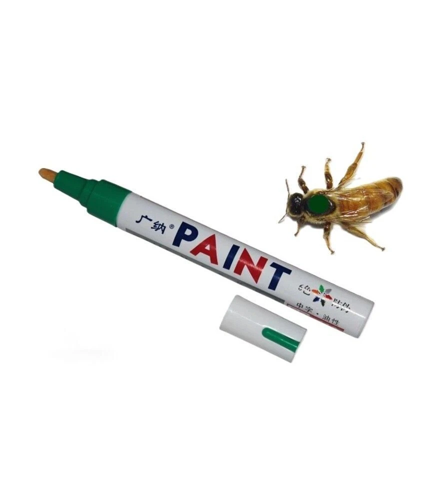 Маркер для мітки маток зеленого кольору використовується для наочного маркування бджолиних маток без застосування клею чи опалітових міток. Такий спосіб мічення зручний під час планових оглядів і дозволяє швидко визначати вік матки або рік її виведення. Зелений колір добре помітний у вулику та відповідає загальноприйнятій системі маркування маток за роками.