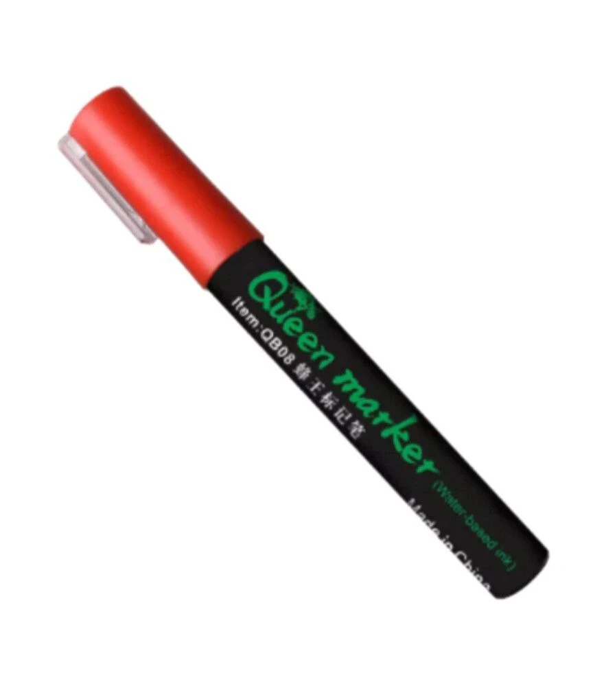 Маркер Квін для мітки маток червоного кольору використовується для чіткого та наочного маркування бджолиних маток під час оглядів. Це простий і зрозумілий інструмент для визначення року виведення матки та ведення обліку бджолиних сімей без застосування клею чи опалітових міток. Маркер працює на акрилових чорнилах на водній основі, добре тримається на грудці матки та підходить для регулярної пасічної роботи.