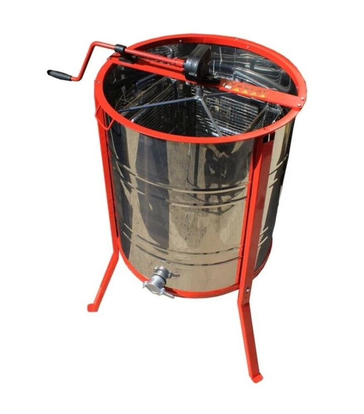 Медогонка 4-х рамкова поворотна нержавіюча, касети зварні нержавіючі, з підставкою (М5005P)Медогонка на 4 рамки з поворотними касетами та підставкою призначена для відкачування меду на невеликих і середніх пасіках. Конструкція виготовлена з харчової нержавіючої сталі, що забезпечує безпечний контакт із медом і спрощує догляд за обладнанням. Наявність підставки дозволяє працювати на зручній висоті та без проблем зливати мед у ємності без додаткових підставок. Модель підходить для регулярного сезонного використання.