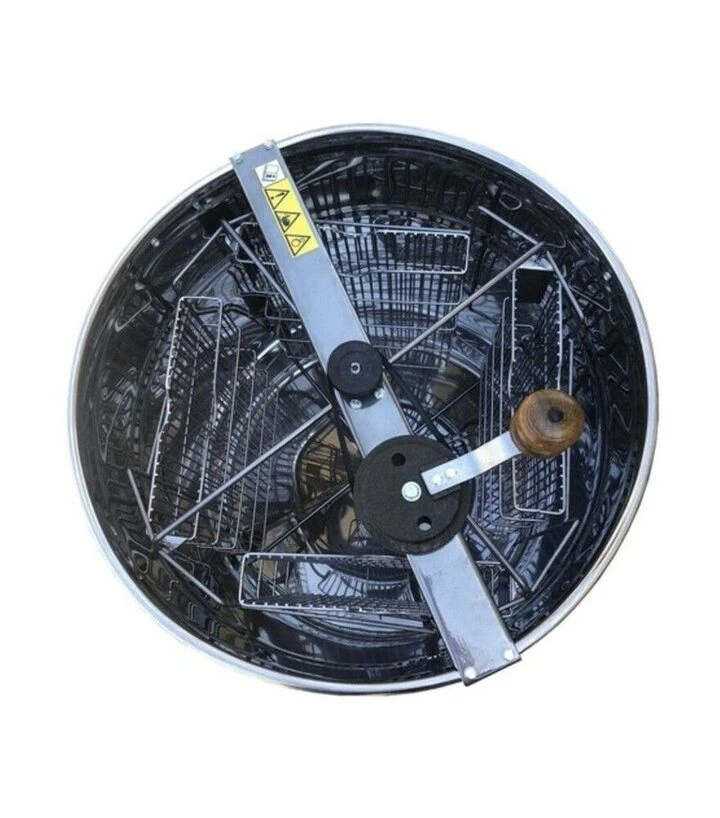 Рамки встановлюються у чотири поворотні касети, закріплені на роторі всередині бака. Обертання здійснюється вручну через ремінний привід, який передає рух на ротор. Система опори з підшипниками забезпечує легкість і плавність обертання. Під дією відцентрової сили мед виходить зі стільників, осідає на стінках бака та стікає донизу у медовий карман, після чого зливається через кран.