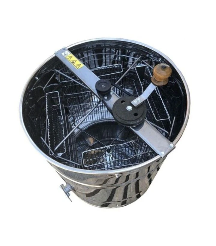 Медогонка 4-х рамкова поворотна нержавіюча, ремінний привід М93236Медогонка призначена для відкачування меду хордіальним способом з чотирьох рамок одночасно та підходить для невеликих і середніх пасік. Бак і дно виготовлені з нержавіючої сталі AISI 430, що забезпечує стійкість до корозії та безпечний контакт з медом. Поворотні касети дозволяють відкачувати мед з обох боків рамок без їх виймання. Ремінний привід забезпечує плавний і рівномірний хід, що важливо під час роботи з молодими або світлими рамками.