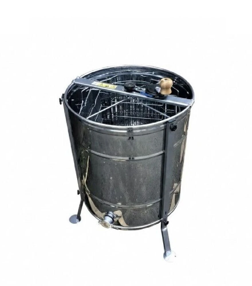 Медогонка 4-х рамкова поворотна нержавіюча, ремінний привід, з підставкою M93236PМедогонка призначена для відкачування меду хордіальним способом з чотирьох рамок одночасно та підходить для пасік із регулярним сезонним навантаженням. Бак виготовлений з нержавіючої сталі AISI 430, що забезпечує корозійну стійкість і безпечний контакт з медом. Поворотні касети дозволяють відкачувати мед з обох боків рамок без їх виймання. Ремінний привід забезпечує плавну та рівномірну роботу, а металева підставка підвищує зручність і стабільність під час експлуатації.