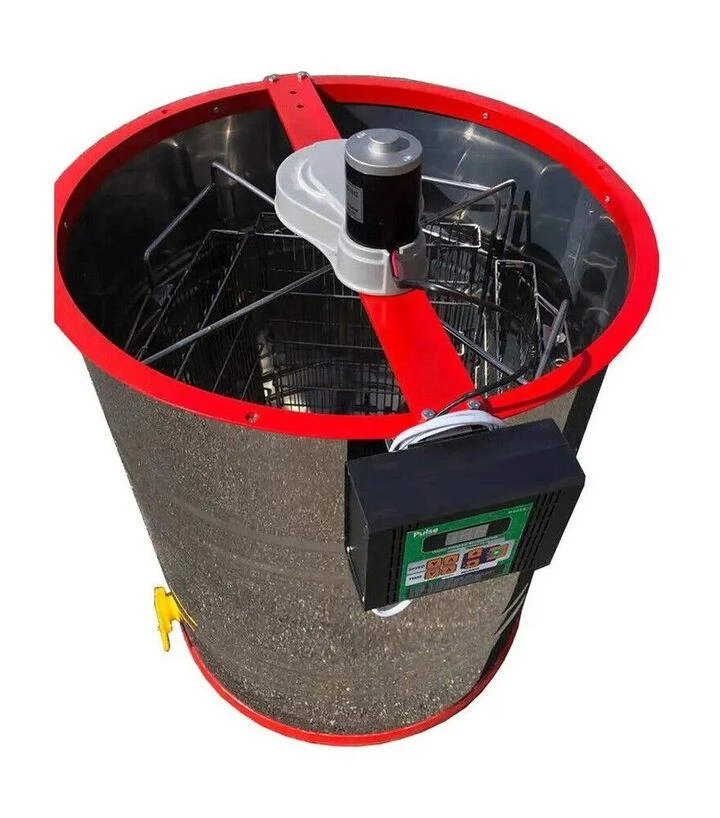 Медогонка 4-х рамкова поворотна нержавіюча, з електроприводом Pulse (MP0003PS)Медогонка на 4 рамки з поворотними касетами та електроприводом Pulse призначена для відкачування меду на пасіках малого й середнього розміру. Бак виготовлений з харчової нержавіючої сталі AISI 304, що забезпечує безпечний контакт із медом та зручне очищення після роботи. Поворотні касети дозволяють відкачувати мед з обох сторін рамки без ручного перевертання, а електропривод зменшує фізичне навантаження під час роботи.