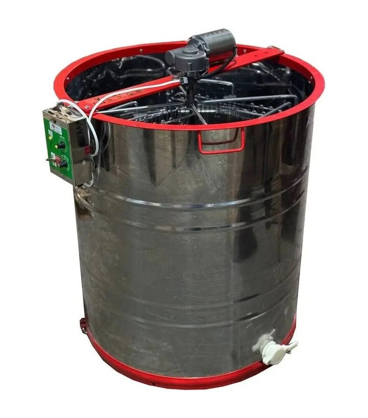 Медогонка 4-х рамкова поворотна нержавіюча, з горизонтальним електроприводом (MP0002NZ)Медогонка на 4 рамки з поворотними касетами та горизонтальним електроприводом призначена для відкачування меду на пасіках малого й середнього розміру. Корпус виготовлений з харчової нержавіючої сталі, касети - нержавіючі, із оцинкованою сіткою, що забезпечує надійну фіксацію рамок під час роботи. Горизонтальне розміщення електроприводу робить конструкцію компактною та зручною в обслуговуванні, а поворотні касети дозволяють відкачувати мед з обох сторін рамки без ручного перевертання.
