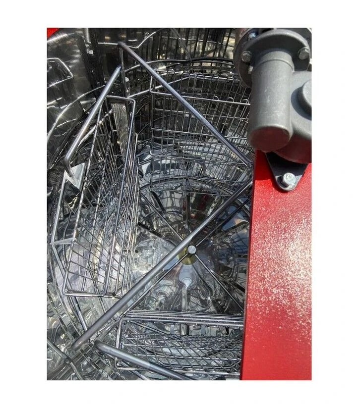 Медогонка 4-х рамкова поворотна нержавіюча, з горизонтальним електроприводом (PA4302)Медогонка на 4 рамки з поворотними касетами та горизонтальним електроприводом призначена для відкачування меду на малих і середніх пасіках. Бак виготовлений з харчової нержавіючої сталі AISI 430, що забезпечує безпечний контакт із медом і простий догляд після роботи. Поворотні касети дозволяють відкачувати мед з обох сторін рамки без ручного перевертання, а горизонтальне розміщення електроприводу робить конструкцію компактною та зручною в експлуатації.
